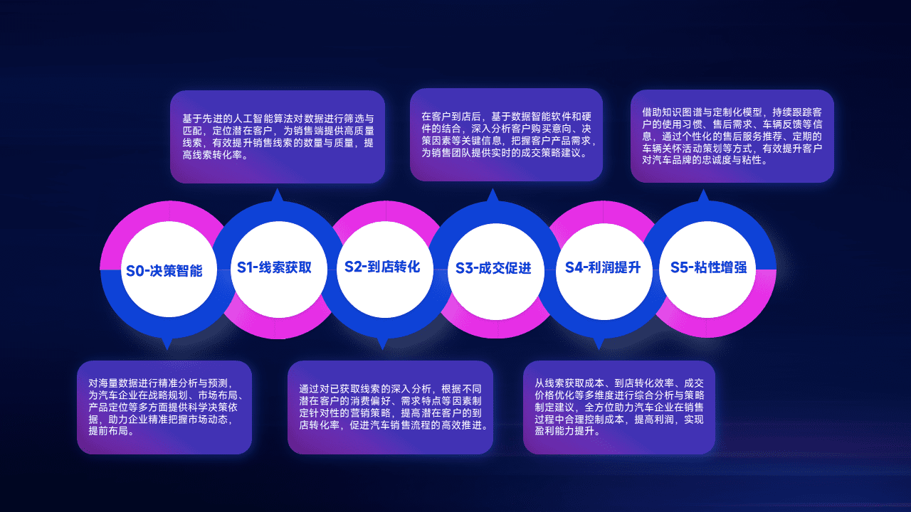 通过拓宽潜在客户来源、、、、优化线索分配并提高到店转化率,,,以增强销售效率。。。。同时,,,利用线索数据不断优化分析模型,,有效提升转化率,,,,扩大营销影响力。。。